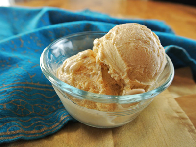 Pour into the ice cream maker and freeze according to manufacturers instructions.