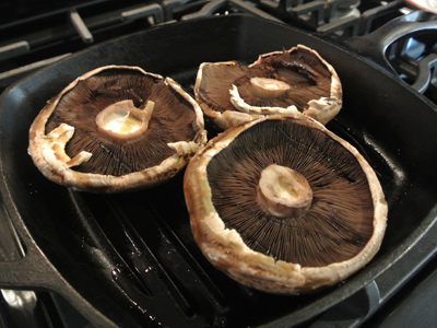 The portabella’s needed to cook down first so I set them in a hot grill pan on top of the stove and drizzled them with olive oil.