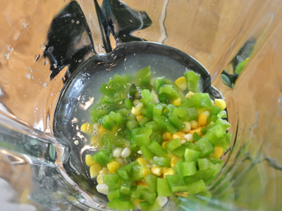 In a blender combine roasted corn, roasted jalapeno, and lime juice.