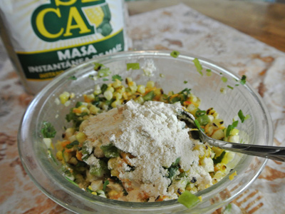 1/4 plus 2 tablespoons Masa Flour (the zucchini mix is more moist and may need additional flour to form patties)
