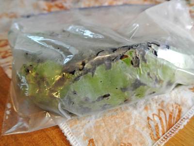 Place in a plastic bag for about 20 minutes before peeling under running water. Once they’ve been peeled, go ahead and stem, seed and chop.
