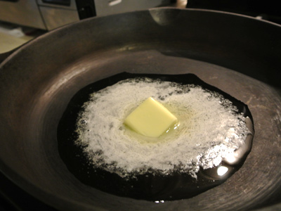 First things first, make the roux. Start by melting the butter in a cast iron skillet.