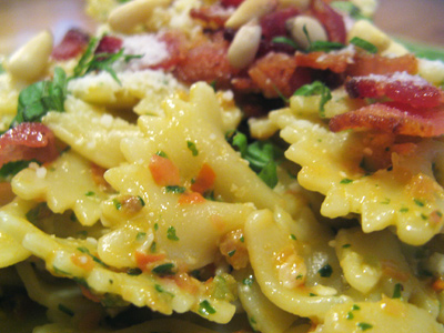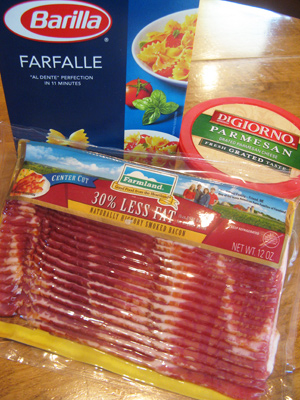 I’m going with some Farfalle pasta along with bacon and some extra Parmesan cheese.
