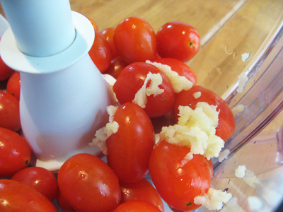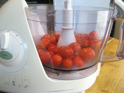 Wash and pat dry the cherry tomatoes, then place in a food processor.