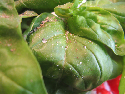 Next comes the basil, salt and pepper. I used the whole bunch or about 1 1/2 cups, but you can go with less.
