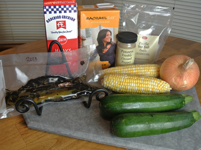 I didn’t have a recipe so I just measured as I went. I assembled the zucchini, fresh corn, onion, green chile, chicken stock, heavy cream, salt and pepper.