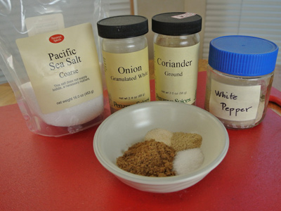 I made a spice blend of salt, white pepper, coriander and onion powder.