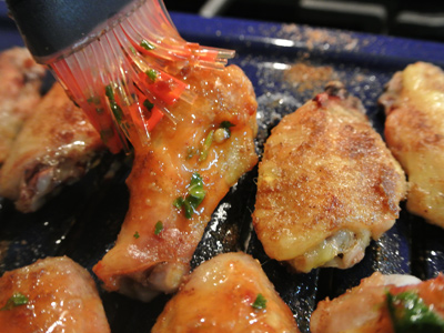 Brush each side of the wings with some of the spicy garlic sauce and place back in the oven for 5 – 7 minutes.