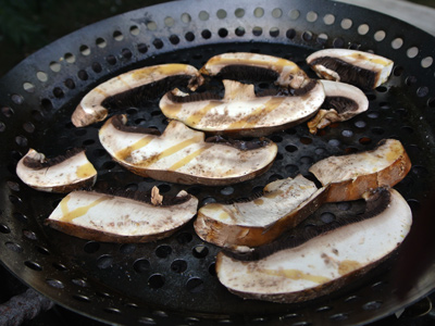On to the portabella slices. A good drizzle of EVOO and some S & P.