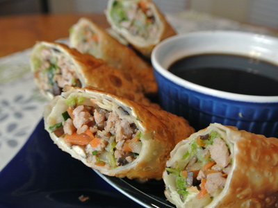 With a winter blast heading our way this past weekend, I went out and stocked up on some supplies in order to wait out the cold and stay bundled inside. I’ve been craving egg rolls and knowing how much prep work they take, it seemed like perfect timing to spend an afternoon working on a timely project. First things first, I have a lot of veggies to chop. While some may think this a tedious task, I find it relaxing. I’m always amazed at how many veggies it takes to make egg rolls, you may think you have way too much filling for your wrappers but after they cook down and release their juices they reduce by about half. They roll up rather easy, once you get the hang of it and pan fry in just a couple minutes. As soon as they go into the fry pan, it brings out my guys who go for a plate and stand by waiting for the first egg rolls to taste. They do taste awfully good when they are freshly made! I just hope they leave some for me . . .