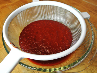 The seeds and skin have been strained to leave a beautiful thick red sauce.