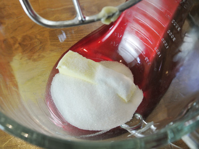 Add the sugar and butter to a mixing bowl with the paddle attachment. Cream the sugar and butter together.