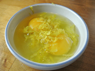 For the batter you’ll need some sugar, flour, salt, butter, eggs and a lemon for the zest and juice.
