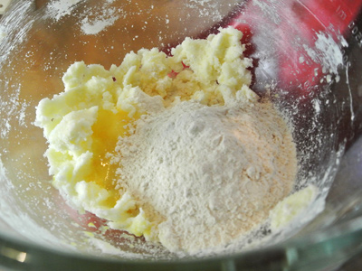 Combine your flour and salt together and add about half. Beat together until combined, then add the remaining egg and flour mix. Beat on medium speed until the batter is light and creamy.