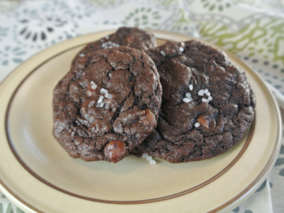 Drop rounded spoonfuls (I use a small ice cream scoop) onto a baking sheet, allowing space in between for the cookies to spread. Bake for 9 – 10 minutes. Immediately sprinkle coarse sea salt onto cookies as they come out of the oven. Let cool on a wire rack.