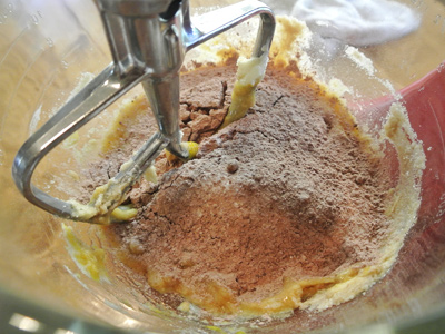 In another medium bowl combine the flour, cocoa powder, baking soda, baking powder and salt.