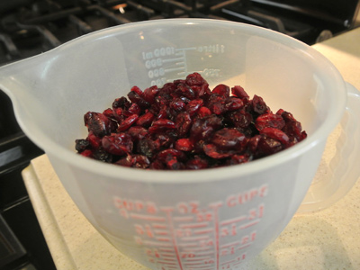 The jam is going to take some time so get started with that first. Measure 3 cups of dried cranberries.