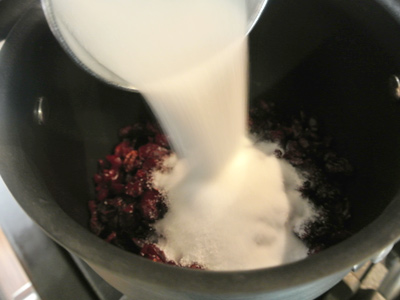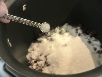 Pour the cranberries in a sauce pot that has a lid. Add 1/2 cup of sugar.