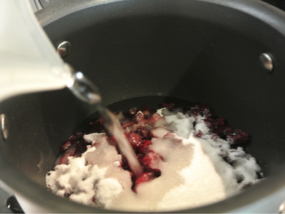 To make the jam: In a medium sauce pot, combine the dried cranberries, sugar, salt and water. Bring the mixture to a boil over high heat. Remove from heat, place a lid on top and let steep for 1 hour.