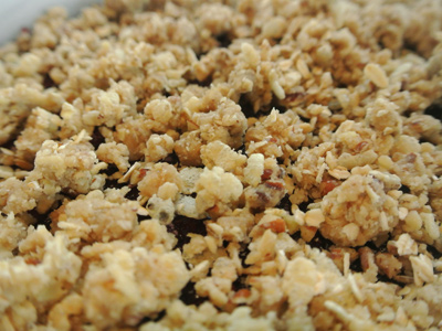 Now take your reserved granola from the fridge. It should have a big crumbly feel.