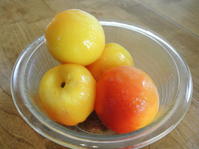 Peaches are easily peeled when blanched. Boil some water and dropped the peaches in for 1 – 2 minutes. Then fill a bowl with ice water and drop the peaches in to halt them from cooking any further.