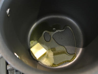 Add butter and olive oil to a 3 quart saucepan over medium heat.