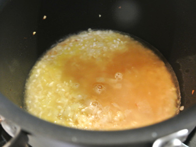 Just like before, the rice is beginning to absorb the liquid.