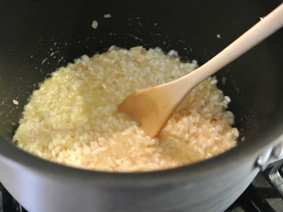 Add a cup of the Arborio rice to the pot and stir for about a minute.