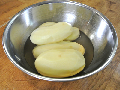 Heat a 3 quart heavy bottomed stock pot. Add the potatoes and enough water to cover the potatoes.