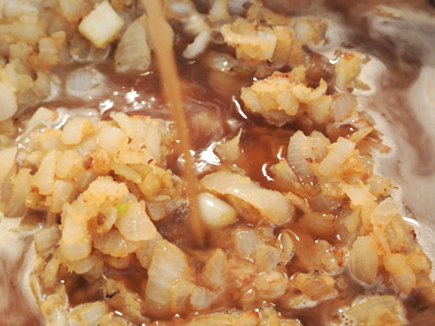 Reserve the grease from the browned ground beef. If you need more, add a drizzle of olive oil. Add the onions and saute until they become translucent.