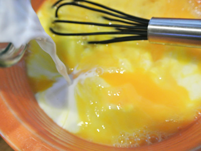 Add a cup of milk and whisk.