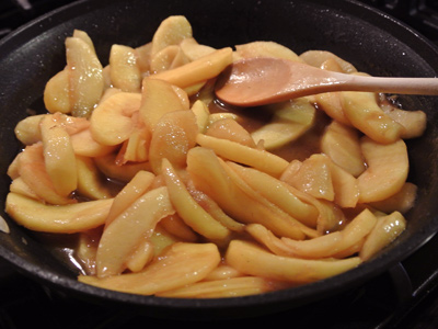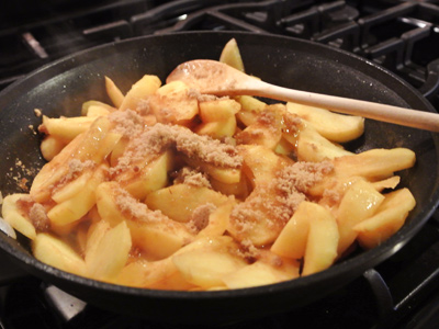 Add the apples to the pan and stir to coat the apples.