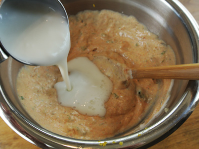 Lastly add the buttermilk. I added 1/4 cup at a time until I had the right consistency and texture. It took approx. 3/4 cup to reach the perfect texture and taste.