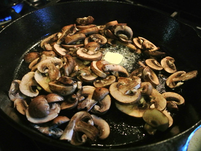 Add 1 tablespoon of butter back into the pan and add the sliced mushrooms.  Stir the mushrooms until the they begin to brown and reduce to about half.  Remove the mushrooms from the pan.