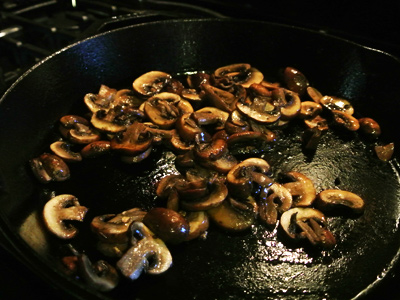 Stir the mushrooms around as they begin to soften and caramelize. When they reduce by about half, remove them from the pan.