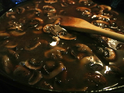 Add the mushrooms back into the sauce.