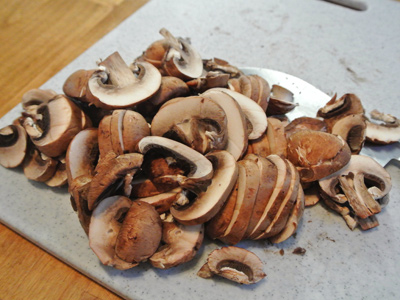 Slice 8 ounces of mushrooms.  I like Baby Bella’s the best.