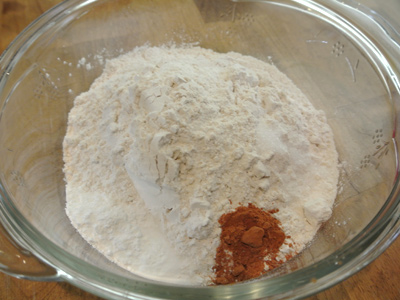 Combine your dry ingredients consisting of all purpose flour, baking soda, cream of tartar, cinnamon and salt.