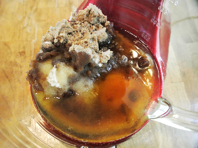 Begin making the cookie dough by combining the brown butter and sugars in a mixing bowl.