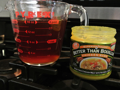 2 Cups Chicken Stock or 2 cups strained Chile Water combined with 2 teaspoons “Better Than Bouillon” Chicken Base