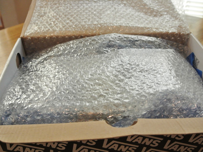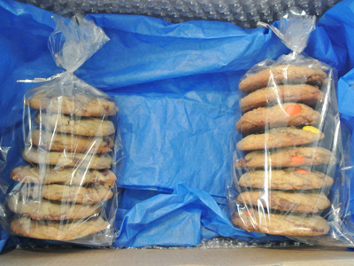 I added some bubble wrap to a small box, next comes the tissue paper. And then the cookies.