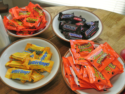 3 – 4 cups Chopped Candy Bits, such as Snickers, Butterfingers, Reese’s Peanut Butter Cups, Reese’s Pieces, M & M’s, or any other favorite Halloween Candy.