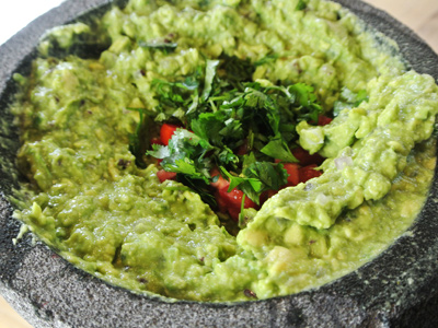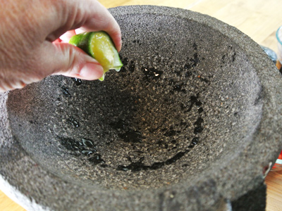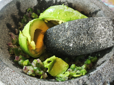 What goes with almost any Mexican dish . . . Guacamole of course!  It’s a favorite for dipping, as well as topping burritos, enchiladas and nachos.  And since I’m celebrating Cinco de Mayo, I thought I’d show you how I make guacamole in a molcajete.  Molcajetes are used to crush and grind spices as well as preparing salsas and guacamole.  In Mexico they are made from porous basalt volcanic rock, typically round in shape with a bowl in the center supported by 3 legs.  The tool used to grind is called tejelote and made from the same material. A molcajete brings out the most amazing aroma by grinding the ingredients into the volcanic stone.  There is an earthiness that heightens your senses of smell and taste. By grinding each ingredient you create a layer of flavors that will come together in the most amazing way.  Every time I make guacamole in a molcajete I think it’s the best guacamole I’ve ever tasted. . . and then I make it again!  Happy Cinco de Mayo!!