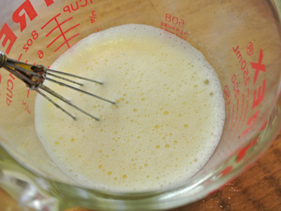 Temper the eggs by whisking as you pour the eggs into the milk.