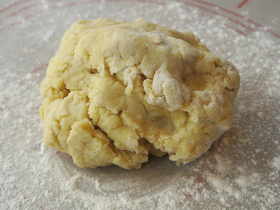 To make the dough sift the flour and cut in the butter until it resembles coarse meal. The butter pieces should be no larger than pea size. In a small mixing bowl combine the egg yolks and salt. Whisk the egg yolks and salt together. Gently pour the egg mixture into the hot milk and whisk to temper the eggs. Stir together until a dough begins to form. If the dough is crumbly and won’t bind together add warm milk a tablespoon at a time until the dough forms. Turn the dough onto a generously floured surface and knead just until dough smooths out. Form into a round disk.