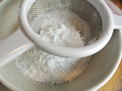 Time for the lemon glaze. Sift one cup of powdered sugar into a medium bowl.