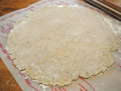 When the dough begins to stick together easily, pour the contents into a zip lock bag and mold the dough into a round disc. Chill for 20 – 30 minutes.
