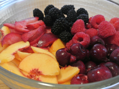 6 – 7 cups of Fruit (Peaches, Plums, Dark Cherries, Raspberries, Blackberries) or any other summer fruit combination