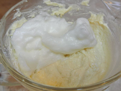 Don’t over stir the batter, rather fold the egg whites in until it is well combined and has a frothy texture.