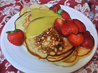 Ricotta Pancakes with Lemon Curd and Strawberries